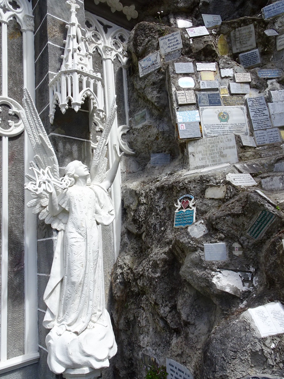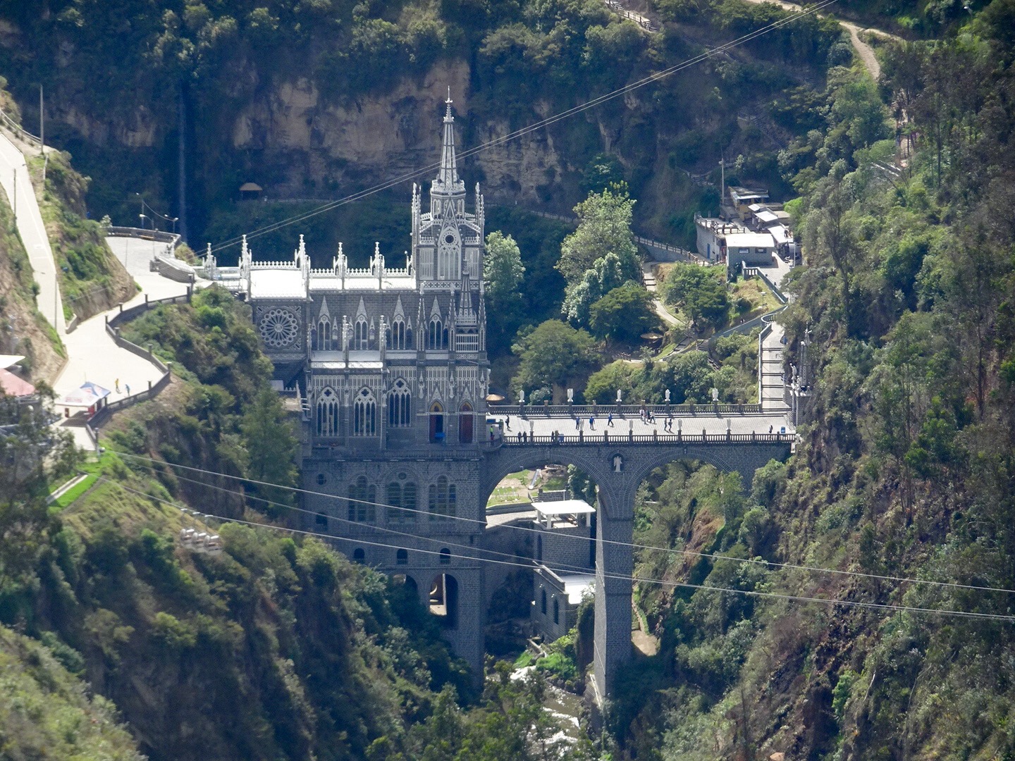Wednesday 16th November 2016 – We wanted to get to Quito today but first we paid a visit to Sanctuario las Lajas (Sanctuary of the Rocks). It turned out to be one of the most unique and memorable places we had visited on our travels. The church, located in the mountains about 5km from Ipiales rises from the side of a gorge in a symbiosis of man made architecture and natural rock. What makes it special though is the hundreds of stone plaques (Lajas) that adorn the gorge walls, thanking the Virgin Mary for miracles performed. The border crossing into Ecuador was (thankfully) uneventful and before long we were on a minibus which took us through the mountains and arrived in Quito late in the evening.