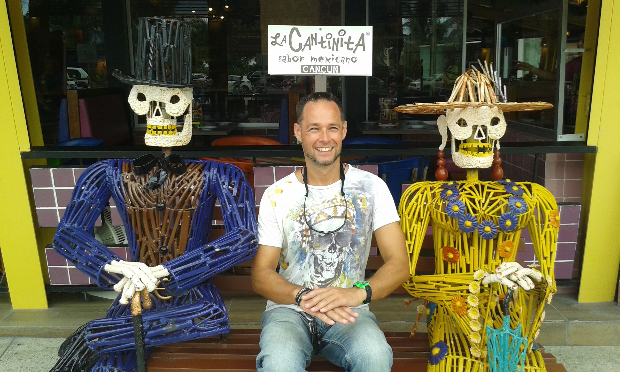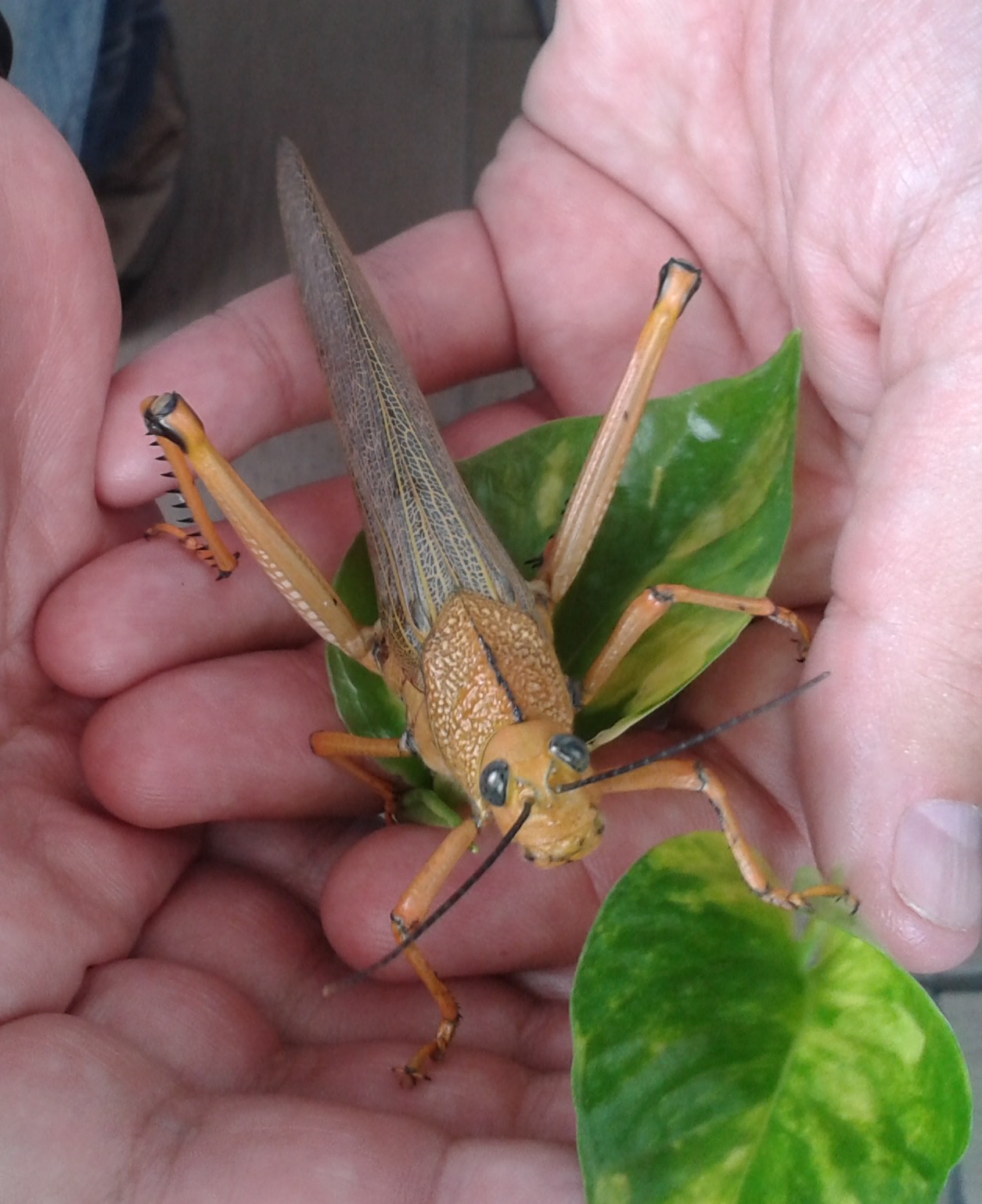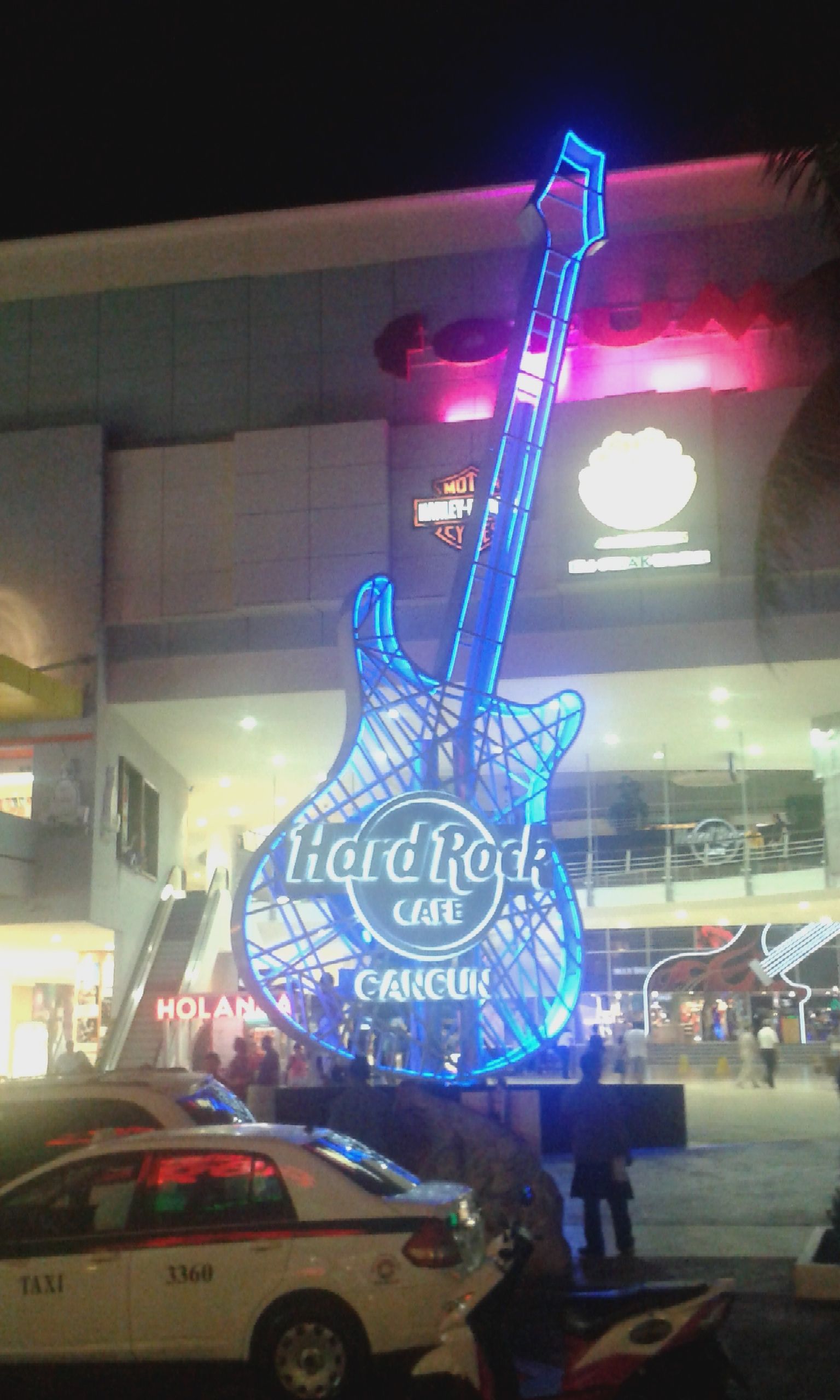 Tuesday 13th September 2016 – 7am…we woke up with a start! Drilling…hammering…sawing…right outside our bedroom window! The noise was horrendous. Little did we know that when we settled down for the night, workmen would appear at the crack of dawn to lay foundations for a new hotel! My goodness, we really needed to move somewhere quieter…so off we set to a dormitory at Hostel Mundo Maya…just across the road. Our next mission was to find a new camera to accompany us on the rest of our travels. We headed to the Mall at Plaza Las Americas. After spotting a few potential candidates we decided before purchasing such an important item, we wanted to research it first. Aaron would come back tomorrow better equipped to make a final decision. On exiting the Mall something landed on Aaron’s finger…an enormous grasshopper…he was a wonderful specimen and hopefully a taste of other insect sightings we would witness in Central America. Returning to our hostel we were accosted by a Mexican man trying to sell us timeshare in a new hotel complex. It took all our powers of verbal non commitment to finally escape him! At the hostel we siestaed…I awoke, jumped off my top bunk only to be informed by Aaron that there was a massive cockroach snuggled into my blanket right where I had been sleeping…oh my…the joys of travelling! We were hungry by now so popped along the road for fish and chips at a delightful 50’s style al fresco cafe. Everything was pink with Elvis playing in the background…it was charming and the food was delicious. Getting on the R1 bus we looked forward to a night on the town in the Hotel Zone of Cancun…where the famous Coco Bongo owned by Jim Carey resides. What a night of fun we had…drinks at Monkey Business Bar…dancing in the street…finished off with the biggest Margarita I have ever had in my life courtesy of Casa Tequila. Not keen on continually being offered drugs on the street we finally caught the bus back to our hostel in the hope that our cockroach room mate wouldn’t put in an appearance again that night!