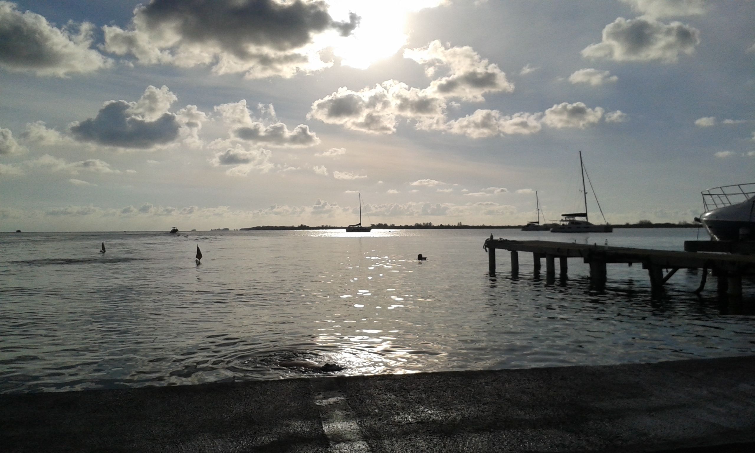 Sunday 9th October 2016 – At 9am we were back in the classroom once again enduring more videos and paper quizzes…it really felt like being back at school. After tasty fish and chips for lunch we returned to Altons to begin our confined water training…the practical side of things this time. Initially we had to check and get our equipment ready five times in order that it became second nature to us. BWRAF was the code for this. B for BCD…buoyancy control device jacket, W for weights, R for releases and straps, A for air regulators and F for final check…face mask and snorkel. Then came crunch time…how would I feel laden up with my diving outfit and ready to jump in? I didn’t know but I was extremely nervous and that’s an understatement. Years ago I had had a bad experience diving in the Red Sea and had vowed never to do it again. However, we were in Utila, one of the best places in the world to learn to dive due to factors such as low prices, clear water and abundant marine life…so I figured I had at least to give it a go!? With all the paraphernalia on I felt so weighed down and cumbersome, it was ridiculous…I could hardly stand up! Ryan went first, then Aaron…then…a tightness in my throat…it was my go. Sounding like Darth Vader with the air regulator you have to take a big step off the jetty into the ocean…one small step for man and one giant step for me…I was in! As soon as I hit the water the BCD jacket buoys you up. I hated the feeling instantly…uncomfortable, trapped, stifled…like a prisoner in a ridiculous wet suit. We swam to our confined water area to practice breathing skills. You have to take your mask off and use the regulator to breathe. I disliked it with a vengeance…such an unnatural feeling…laboured breaths and the noise…so loud and eerie. You mustn’t hold your breath at all costs…that is drummed into you from day one…it could literally cost you your life when diving. I just couldn’t relax, my breathing was laboured and my equilibrium in turmoil. Ryan and Aaron on the other hand were like ducks taking to water. Breathing from a cylinder just felt like all kinds of wrong to me. Putting my trust into it felt like suicide! After an hour of trying to breathe from the cylinder I knew it was time to hang my flippers up. I felt sorry for Thomas, our instructor, when he asked me what I didn’t like about it. I replied…everything…I absolutely hated it! I couldn’t wait to get out. The feeling of releasing my BCD from my body was like being reborn again…I was free! I had made the right decision, I was a snorkelling girl and not a a scuba diver…I knew that with certainty now. Aaron and Ryan continued their training all afternoon while I sunbathed, snorkelled and watched with mounting relief as I realised I would never have felt comfortable with the skills…instinct told me my decision was a good one. The silver lining that day was seeing a baby lemon stingray swimming right by our jetty…it was searching for food and disturbing the bottom bed of sand with its rippling movements…it was beautiful. Dinner was also fantastic, a Marlin fish super at the restaurant just over the road and a lovely chat with Texan Ryan, Aaron’s new diving buddy. What a convoluted day it had been!