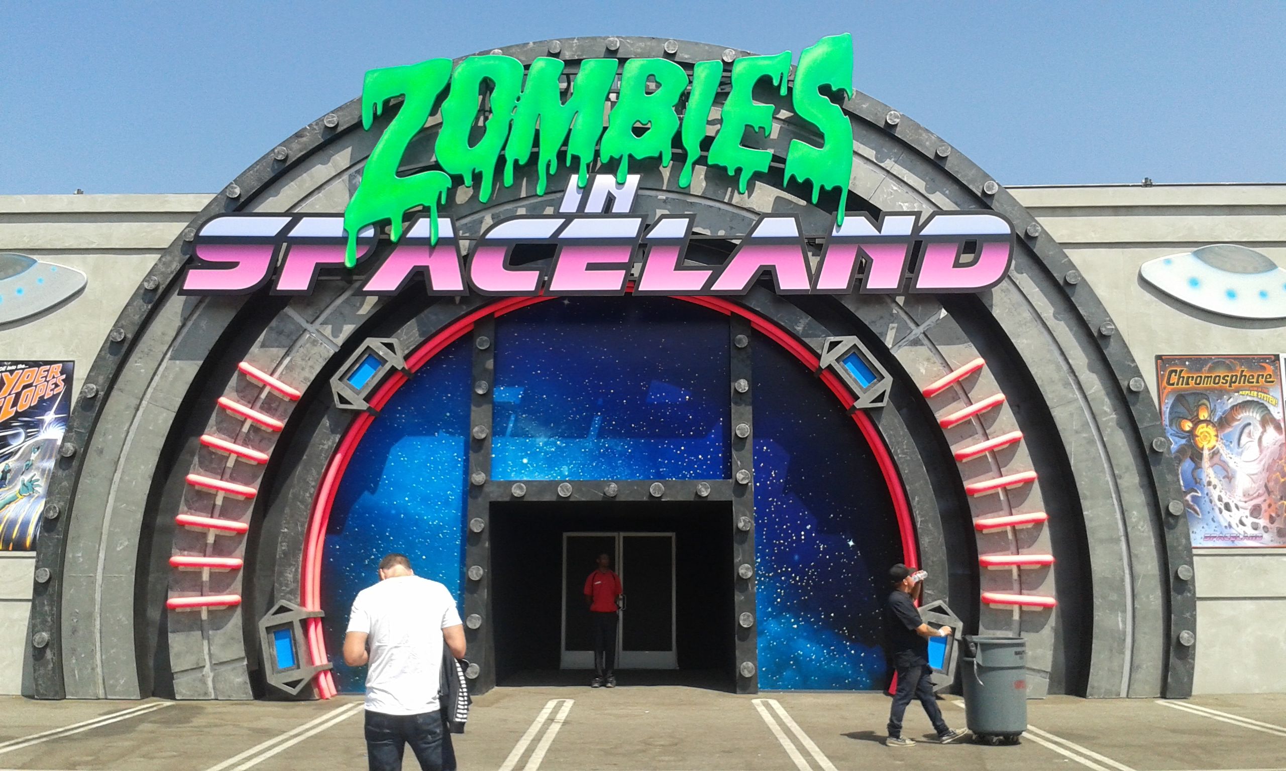 Friday 2nd September 2016 – Dunc was in LA for the Call of Duty 2016 World Championships, the biggest console tournament in the calendar. Professional gamers compete for over $1,000,000 in prize money and gaming fans pay handsomely to watch them battling it out on giant screens in a 5,000 seat arena. The action is live streamed on the internet with commentary from professional web casters. This is big business; a lot of these kids make more money than their parents and some are minor celebrities. Scuf had a promotional stall at the event and was a sponsor for many of the teams. Dunc offered to get me into the event and I eagerly accepted. We met at 9am and took a taxi to the venue where I was furnished with a VIP wristband and given a pro-gamers jacket- just about the coolest thing you could possibly wear at an event like this! The place was already busy. Outside there were two zip lines, a paintball battlefield, a zombie themed laser quest marquee and various corporate stalls. The Scuf stall had a display of some of its products, an area where you could test out the latest controllers and a cut out scene you and a mate could put your head through and when you took a photo one of you looked like a zombie. We tried the various activities but the real interest was in the main arena. I don’t play Call of Duty so didn’t have a clue what was going on. Nevertheless it was fascinating and after several hours of watching the big screens with webcast commentary I began to appreciate how skilful these players were. Alysa, meanwhile had spent a blissful day pampering herself at the hotel- zombies and first person shooters aren’t really her thing.