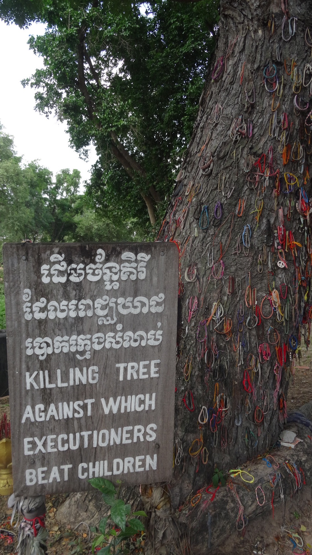 Sunday 24th July 2016 – We get quite excited when our clothes come back from the laundry – an entire wardrobe is returned to you clean, dry and neatly folded. This morning we got our clothes back from the laundry and we were happy. After lunch we hired a tuk-tuk to take us to the notorious Killing Fields at Choeng Ek just outside Phnom Penh. Superficially at least the location didn’t exude the same grim horror as S21; there were trees and grass, birds were singing and the sun was shining. The horror was there though; clothing remains embedded in the hardened mud of excavated mass graves and ribbons hang from the tree used to kill infants and babies. Later we took a walk along the river which was full of life as tourists and locals alike enjoyed the evening sun. Before bed we packed our bags ready for our journey back to Bangkok the next morning.
